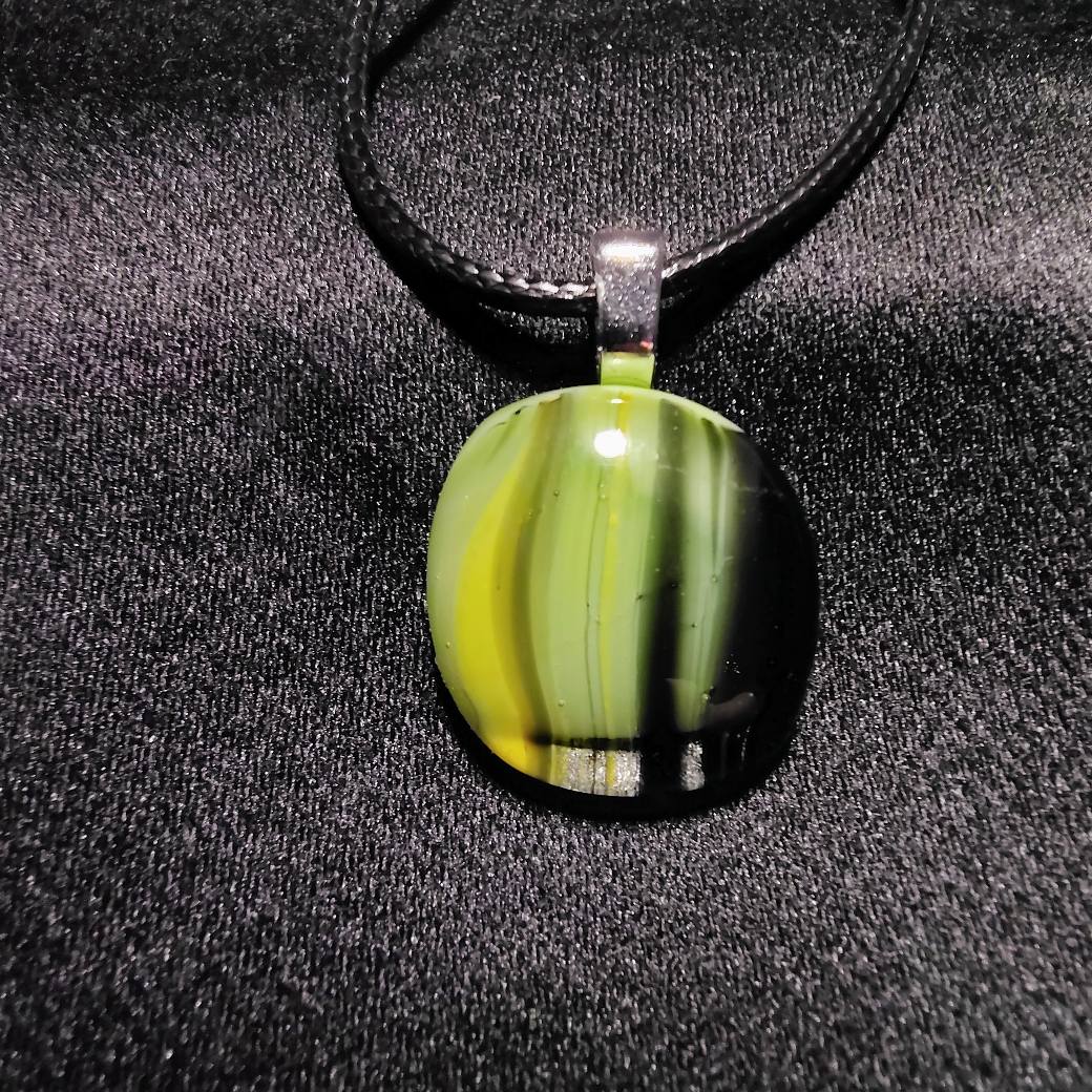 fused glass, silver plated bail, 20" woven lobster clasp cord