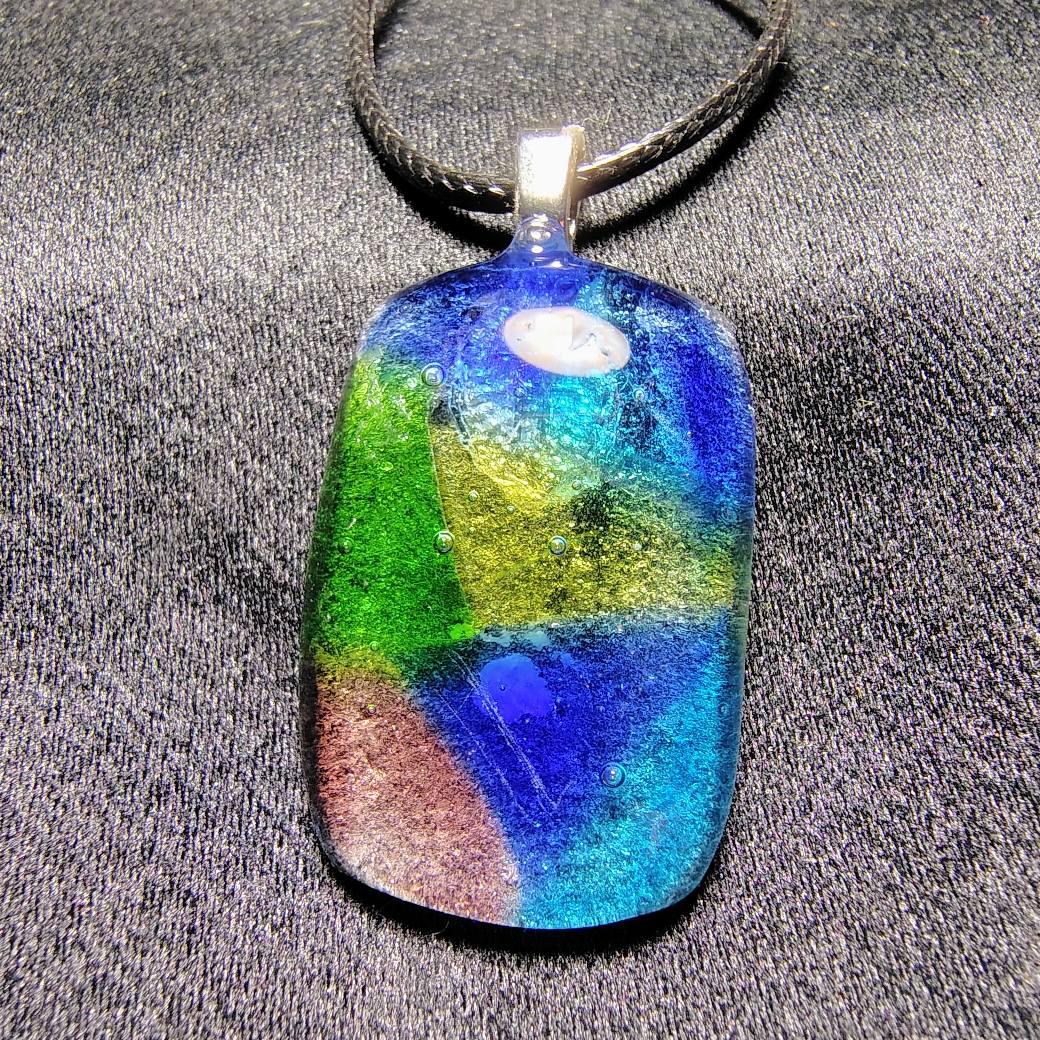 fused glass, silver plated bail, 20" woven lobster clasp cord