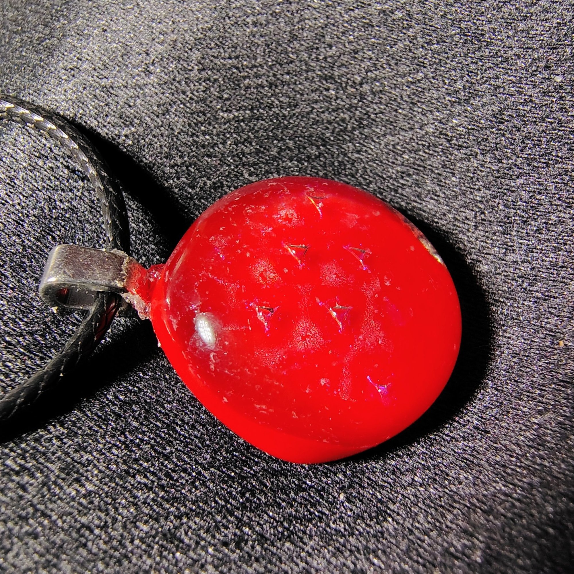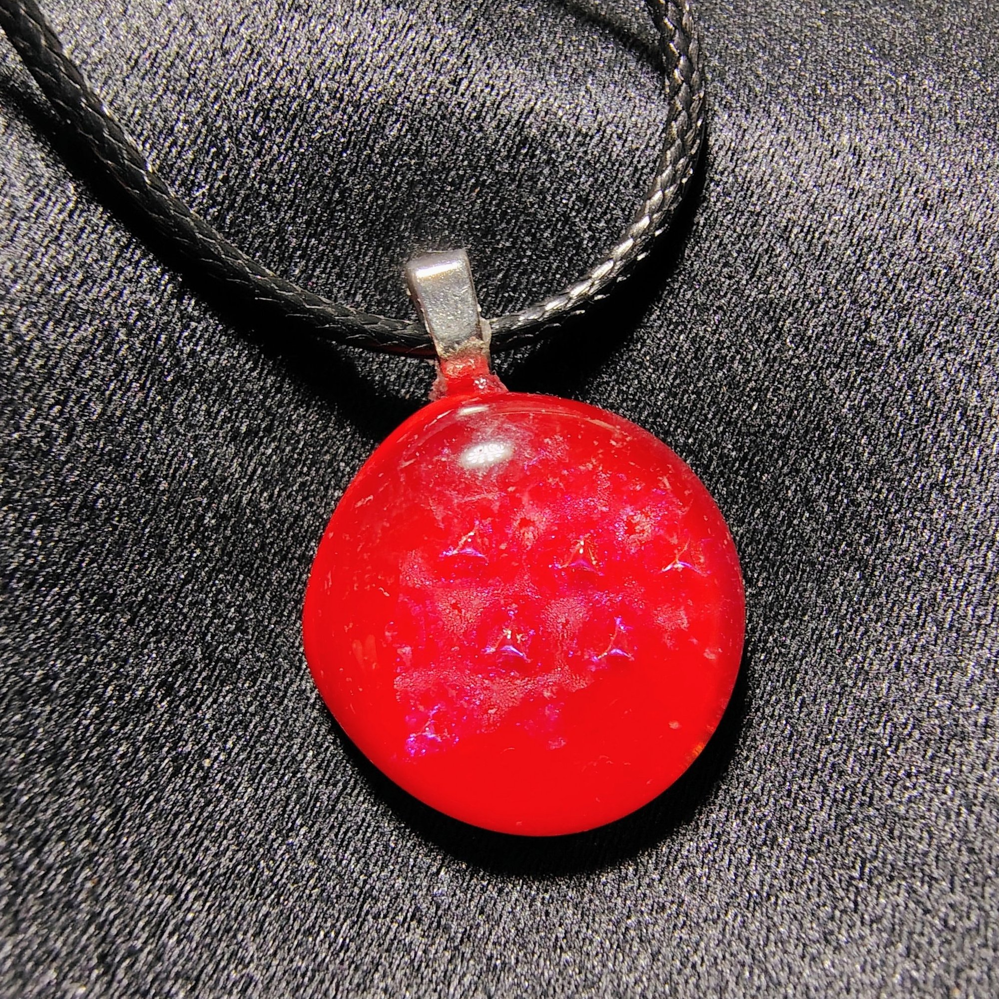 1" dichroic glass pendant, silver plated bail, 20" woven lobster clasp cord