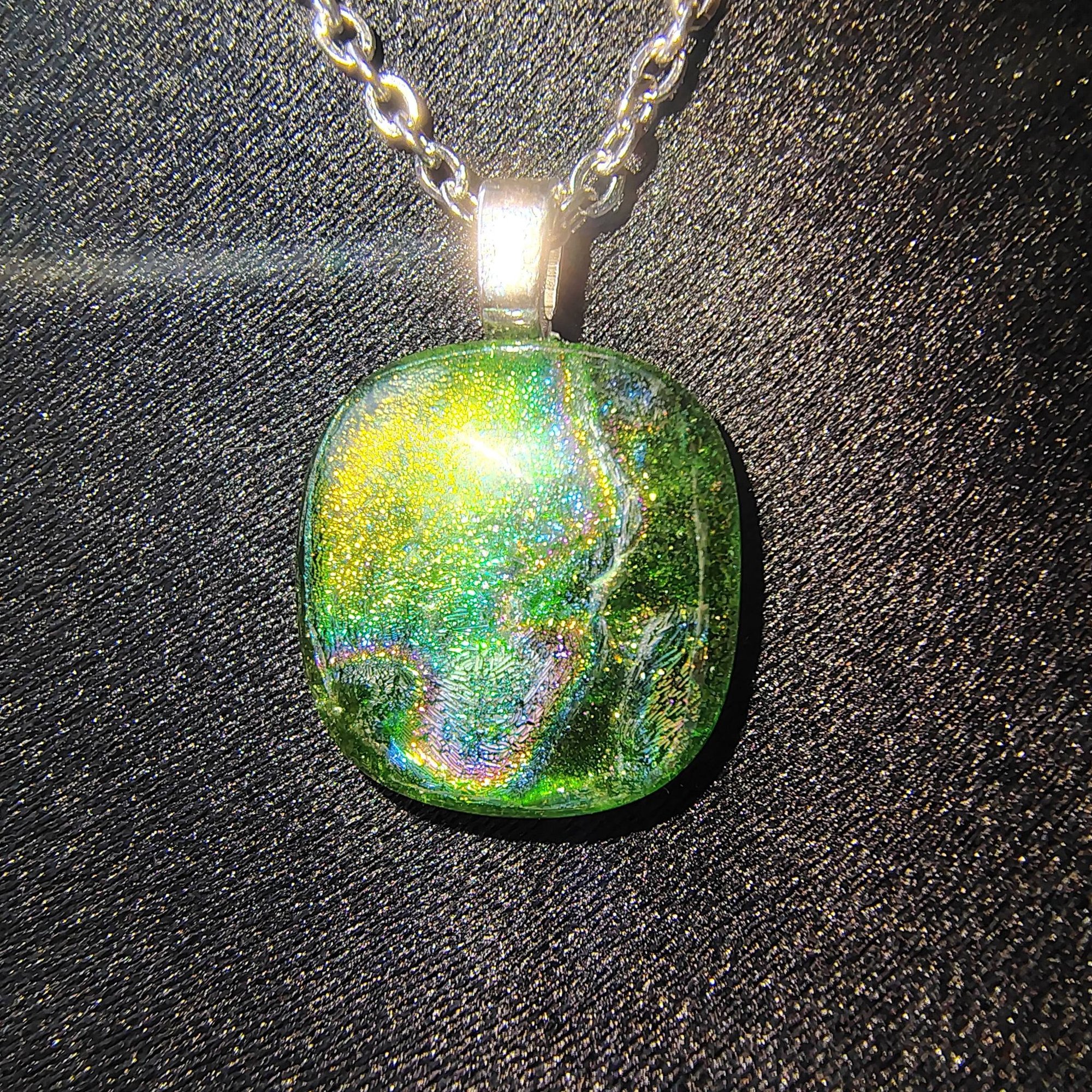a lively green with a subtle rainbow flash running through it; a little earthy, a little strange, a little luminous. LichenShine feels like something you might find growing in an enchanted forest...