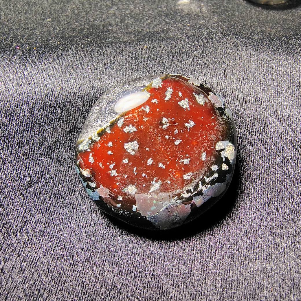 Meteor Charm is a shimmer sprinkled musing, bright with ember red and dusted with silver like it just fell from the night.
