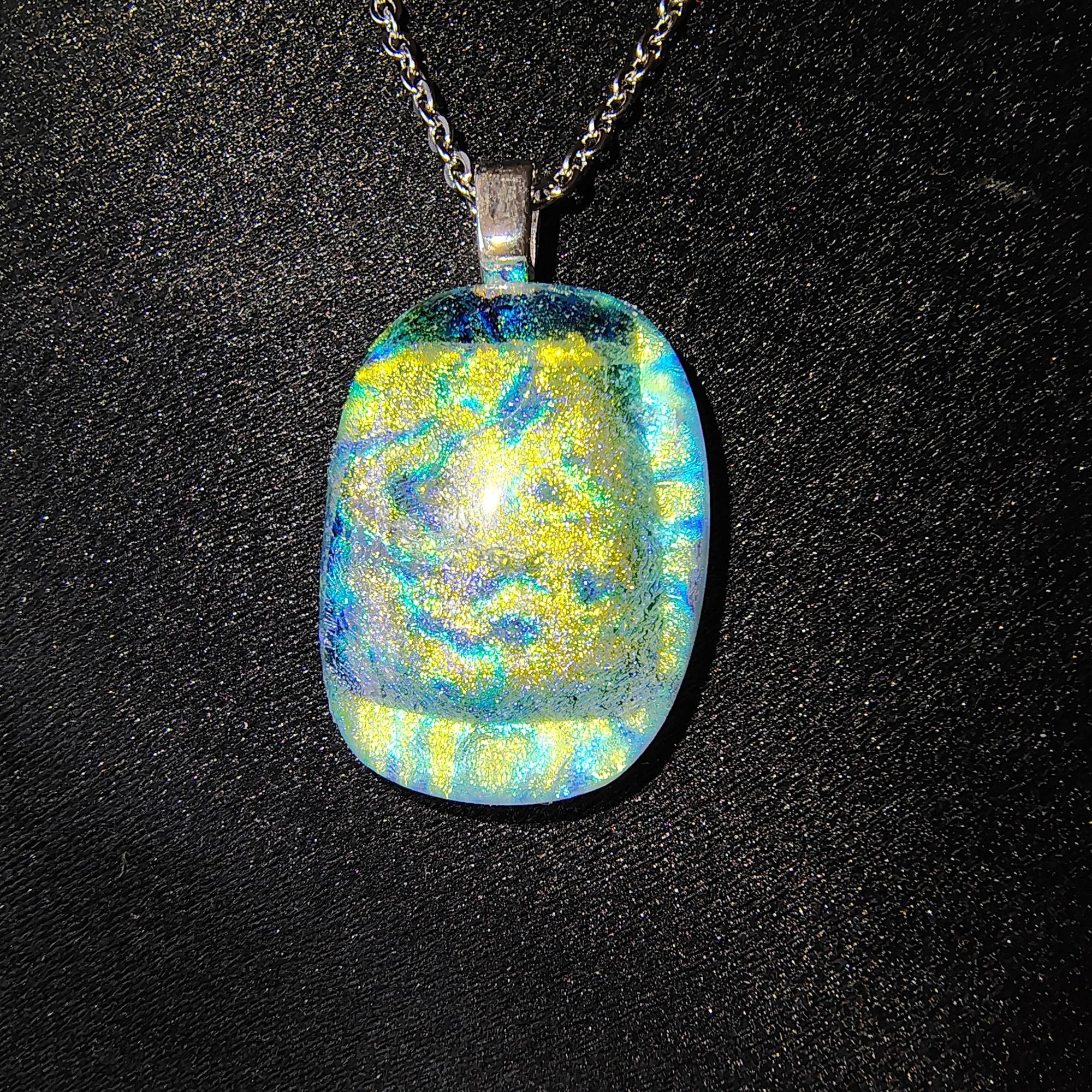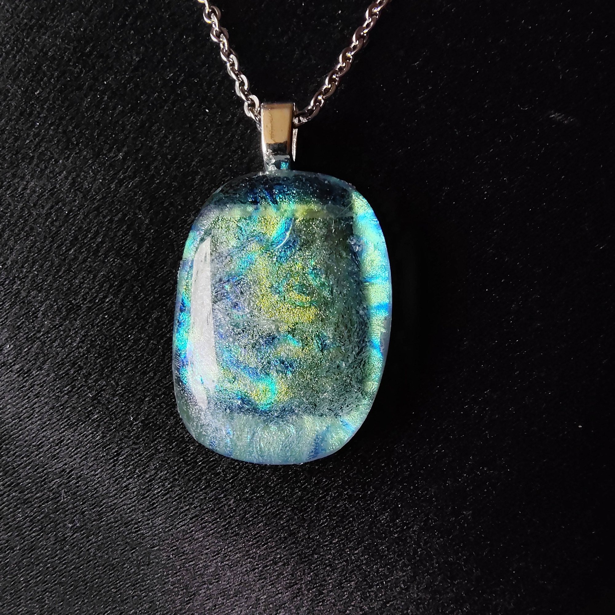 1" kiln fused dichroic glass pendant, silver plated bail