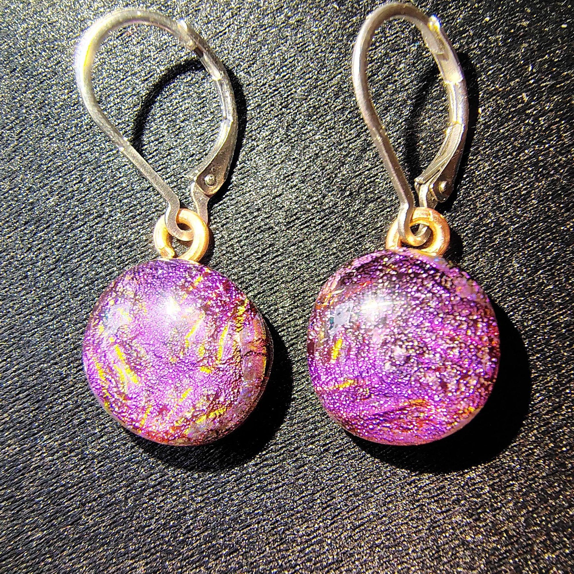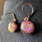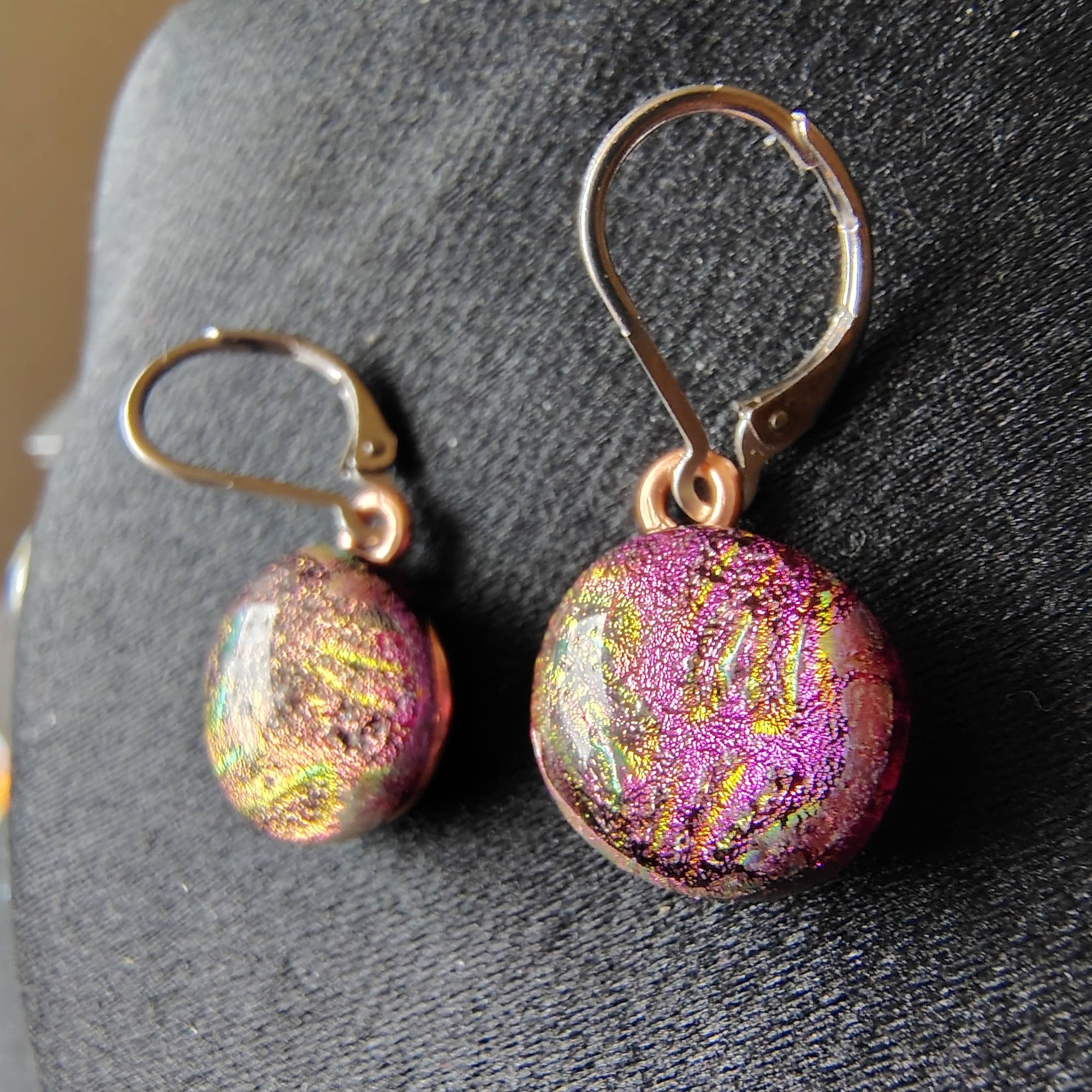 kiln fused dichroic glass, silver plated lever back earrings, copper bail